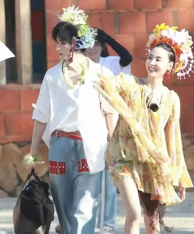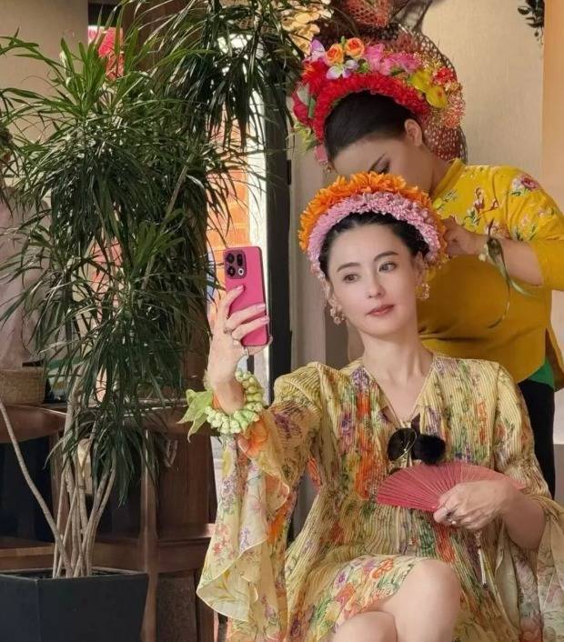 最吸睛的是她头上戴着的黄色簪花,搭配宽松的服饰,不仅衬得她身材姣好,一双大长腿也格外抢镜。虽说张柏芝已经 45 岁,还当了妈妈,但她依旧保持着满满的少女感,容颜精致,皮肤白皙透亮,骨相和皮相都堪称完美,一眼看去,美艳御姐的气质扑面而来,妥妥的 “美颜暴击”。